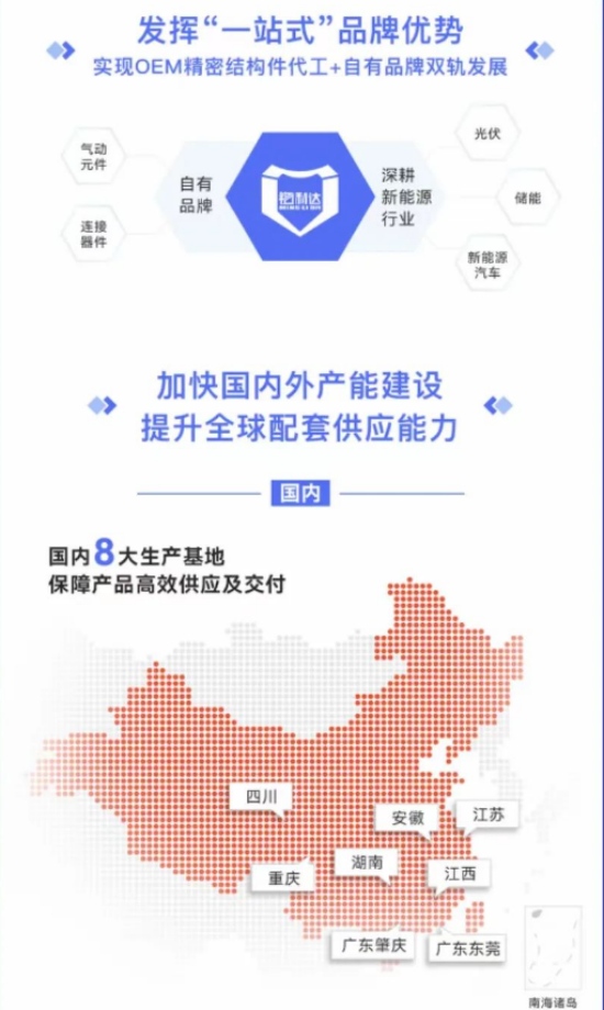 據(jù)了解,銘利達系專業(yè)從事精密結(jié)構(gòu)件及模具的設(shè)計、研發(fā)、生產(chǎn)及銷售,以產(chǎn)品研發(fā)、模具設(shè)計和工藝設(shè)計與創(chuàng)新為核心,以精密壓鑄、精密注塑、型材加工和五金沖壓技術(shù)為基礎(chǔ),為國內(nèi)外優(yōu)質(zhì)客戶提供多類型、一站式的精密結(jié)構(gòu)件產(chǎn)品。 銘利達表示,收益與下游產(chǎn)業(yè)高景氣度,公司精密結(jié)構(gòu)件產(chǎn)品在手訂單充沛并保持一貫業(yè)績增勢。疊加國內(nèi)下半年迎來裝機旺季、新能源汽車產(chǎn)銷穩(wěn)增、海外布局提速等利好驅(qū)動,公司憑借制造優(yōu)勢和品牌輻射力,繼續(xù)鎖定市場份額和實現(xiàn)增量突破。 據(jù)介紹,從涉及行業(yè)來看,公司產(chǎn)品的應(yīng)用領(lǐng)域主要包括光伏、儲能、安防、新能源汽車以及消費電子。其中,光伏、儲能和新能源汽車為清潔能源應(yīng)用領(lǐng)域,預(yù)期未來一段較長的周期都將保持較高的成長性和增長空間,同步將帶動結(jié)構(gòu)件行業(yè)領(lǐng)域的持續(xù)快速發(fā)展。國家能源局數(shù)據(jù),2023年上半年,中國廣泛新增裝機量為78.42GW,同比增長154%。中國汽車工業(yè)協(xié)會數(shù)據(jù)顯示,上半年,新能源汽車產(chǎn)量378.8萬輛,同比增長42.4%。 另外,安防經(jīng)過多年的發(fā)展,目前已處于行業(yè)的成熟期,消費類電子,尤其如加熱不燃燒煙等新型消費品等應(yīng)用領(lǐng)域方興未艾,也處于行業(yè)快速發(fā)展階段。發(fā)揮一站式品牌優(yōu)勢,實現(xiàn)0EM精密結(jié)構(gòu)件代工+自有品牌雙軌發(fā)展。 在產(chǎn)能建設(shè)方面,目前,銘利達在國內(nèi)建成8達生產(chǎn)基地,分布在廣東東莞、肇慶,江西、湖南,重慶,四川,江蘇、安徽等地,保障產(chǎn)品高效供應(yīng)及交付。2023年加速布局海外生產(chǎn)基地,北美墨西哥和歐洲匈牙利基地推進投建。進一步穩(wěn)固海內(nèi)外客戶的合作粘性。