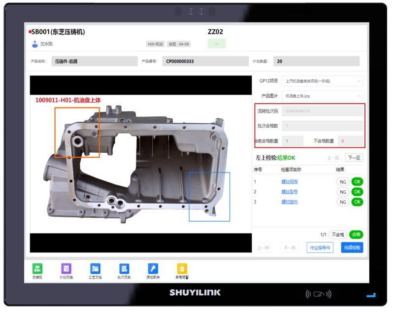 ?? DFS系統的GP12針對批次管理的產品,專門設計了以下界面。 批次產品在經過GP12檢驗之后都會被賦予唯一的身份碼,將批次管理巧妙轉化為單件管理,滿足分批檢驗、自動裝箱等一系列管理要求;同時支持不良品自定義單件碼,方便工廠后續的目視化管理及不良品的統計。【適用范圍:批次管理的產品】