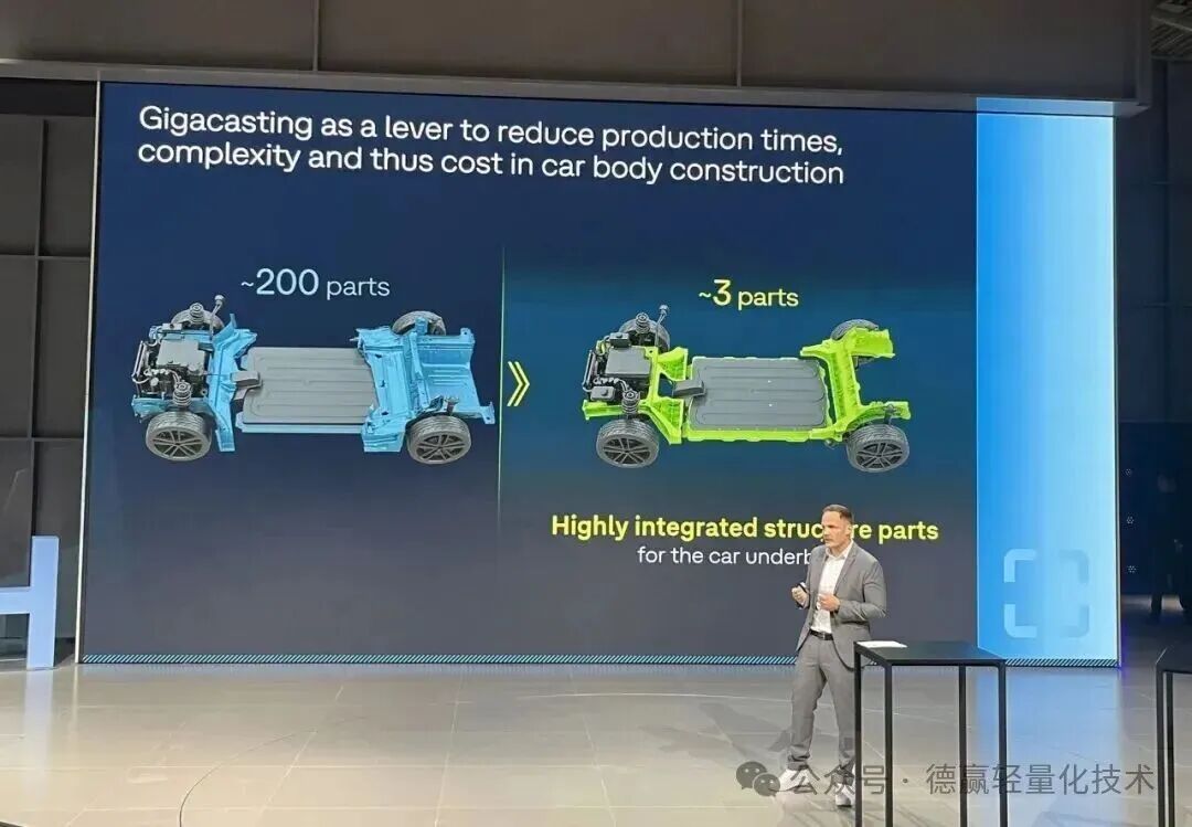 ![]() 日前(2025年9月9日至14日),在慕尼黑舉辦的IAA Mobility 2025車展上,大眾汽車在技術日發布會上宣布將為多款即將上市的入門級電動車采用一體化壓鑄技術。 初期戰略包括整合大型鋁鑄電池托盤,或更精確地說,托盤框架。該技術將率先應用于全新大眾ID. Polo、Cupra Raval、Škoda Epiq以及尚未公布量產版的VW ID. Cross。 馬克·亞當博士在會議中探討了大型鑄件的未來發展,強調其能縮短生產周期、降低復雜度并實現成本節約,同時透露可能規劃新建配備8400噸壓鑄機的工廠,重點提升集成化、生產力和效率。 演講還展望了大眾“一體化壓鑄”戰略的擴展前景,將其定位為高產量電動平臺的里程碑。 大眾尚未就前后底盤一體化壓鑄方案作出最終決定,但明確表示若未來選擇“特斯拉路線”,則需采用演講中提及的8400噸級等一體化壓鑄機。