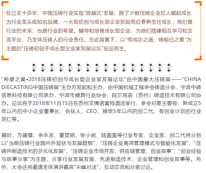 希望之翼,2018壓鑄成長型企業(yè)家論壇“蘇城論劍”