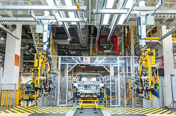 新工廠具備沖壓、車身、油漆、總裝和電池裝配車間等功能生產(chǎn)區(qū)。工廠采用1400多臺(tái)工業(yè)機(jī)器人,大規(guī)模應(yīng)用領(lǐng)先的制造技術(shù),實(shí)現(xiàn)制造全過(guò)程的智能化和數(shù)字化,大幅度提高生產(chǎn)效率;廣泛應(yīng)用高度自動(dòng)化裝配和在線自動(dòng)測(cè)量技術(shù),保障產(chǎn)品質(zhì)量穩(wěn)定可靠,是一座集智能制造、節(jié)能環(huán)保為一體的現(xiàn)代化標(biāo)桿工廠。 據(jù)介紹,新工廠總裝車間設(shè)計(jì)生產(chǎn)能力為60JPH,達(dá)產(chǎn)后完成30萬(wàn)的年生產(chǎn)量。它是目前大眾汽車集團(tuán)自動(dòng)化率最高的量產(chǎn)車型總裝車間,自動(dòng)化率達(dá)26.2%,模塊化程度和柔性更高。