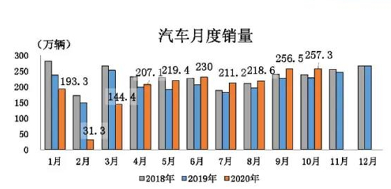 ![]() 昨日(11月11日),中國汽車工業(yè)協(xié)會信息發(fā)布會在北京召開。2020年10月,我國汽車產(chǎn)銷分別完成255.2萬輛和257.3萬輛,環(huán)比分別增長0.9%和0.1%,同比分別增長11%和12.5%。截至本月,汽車產(chǎn)銷已連續(xù)7個月呈現(xiàn)增長,其中銷量已連續(xù)六個月增速保持在10%以上。 10月,擴大內(nèi)需戰(zhàn)略以及各項促進消費政策持續(xù)發(fā)力,國內(nèi)統(tǒng)籌推進疫情防控和經(jīng)濟社會發(fā)展工作成效明顯。市場需求繼續(xù)恢復(fù),產(chǎn)業(yè)循環(huán)持續(xù)改善,企業(yè)利潤穩(wěn)步回升,就業(yè)形勢總體穩(wěn)定,消費市場持續(xù)穩(wěn)定復(fù)蘇,疊加國慶和中秋雙節(jié)效應(yīng),汽車市場需求不減,產(chǎn)銷形勢總體向好,同比繼續(xù)保持增長勢頭。從產(chǎn)銷量同比看,當(dāng)月汽車產(chǎn)銷繼續(xù)呈現(xiàn)兩位數(shù)增長,累計汽車產(chǎn)銷降幅已收窄至5%以內(nèi)。 1-10月,汽車產(chǎn)銷分別完成1951.9萬輛和1969.9萬輛,同比分別下降4.6%和4.7%,降幅較1-9月分別繼續(xù)收窄2.1和2.2個百分點。