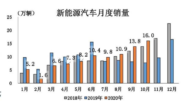 乘用車?yán)^續(xù)保持增長,對整體汽車市場的增長貢獻高于商用車,且好于上月,乘用車中SUV、交叉型乘用車?yán)^續(xù)快速增長;商用車在貨車、客車的拉動下,依然呈現(xiàn)大幅增長,銷量第7次刷新當(dāng)月的歷史記錄,其中重、輕、微型貨車銷量也均創(chuàng)下當(dāng)月的歷史新高。新能源市場表現(xiàn)突出,本月銷量呈現(xiàn)大幅度增長,實現(xiàn)本年度第4 次刷新當(dāng)月歷史記錄,累計銷量降幅明顯收窄。出口市場開始呈現(xiàn)恢復(fù)態(tài)勢,繼9月汽車出口增速由負轉(zhuǎn)正后,本月繼續(xù)保持增長。 乘用車產(chǎn)銷同比繼續(xù)保持增長 10月,乘用車產(chǎn)銷分別完成208.4萬輛和211.0萬輛,環(huán)比分別增長1.6%和0.8%,同比分別增長7.3%和9.3%。從細分車型來看,除MPV車型外,其他3類車型產(chǎn)銷均呈現(xiàn)同比增長。 1-10月,乘用車產(chǎn)銷分別完成1531.6萬輛和1549.5萬輛,同比分別下降10.1%和9.9%,降幅較1-9月繼續(xù)收窄2.3和2.5個百分點。從細分車型來看,SUV和交叉型乘用車好于總體水平,其中轎車產(chǎn)銷同比分別下降14.1%和13.6%;SUV產(chǎn)銷同比分別下降2.7%和3.1%;MPV產(chǎn)銷同比分別下降31.2%和29.5%;交叉型乘用車產(chǎn)銷同比分別下降 5.9%和4.6%。 商用車產(chǎn)銷同比繼續(xù)保持大幅增長 10月,商用車產(chǎn)銷分別完成46.8萬輛和46.4萬輛,環(huán)比分別下降2.2%和2.8%;同比分別增長 30.9%和30.1%。細分車型銷量來看,客車、貨車呈現(xiàn)增長,其中貨車今年第7次刷新當(dāng)月歷史記錄。貨車分車型來看,重型、輕型、微型貨車也均刷新當(dāng)月歷史銷量記錄。客車分車型來看,輕型客車增長貢獻明顯。 1-10月,商用車產(chǎn)銷分別完成420.3萬輛和420.4萬輛,同比分別增長22.5%和20.9%,增幅較1-9月繼續(xù)擴大1和1.1個百分點。分車型產(chǎn)銷情況看,客車產(chǎn)銷分別下降5.2%和6.6%;貨車產(chǎn)銷分別增長25.7%和24.1%。 新能源汽車產(chǎn)銷同比大幅增長 10月,新能源汽車產(chǎn)銷分別完成16.7萬輛和16萬輛,同比分別增長69.7%和104.5%,其單月產(chǎn)銷第四次刷新了當(dāng)月歷史記錄。從細分能源類型來看,其中純電動汽車產(chǎn)銷分別完成14.1萬輛和13.3萬輛,同比分別增長72.4%和115.4%;插電式混合動力汽車產(chǎn)銷分別完成2.6萬輛和2.7萬輛,同比分別增長56.7%和63.7%;燃料電池汽車產(chǎn)銷分別完成77輛和79輛,同比分別增長1.3%和4.0%。