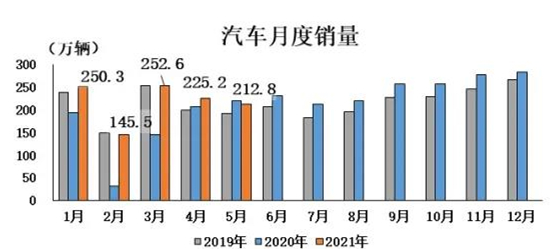 從全年的銷量來看,會比之前預測的“4%增長”高一些,全年實現同比6.5%的增長、整體銷量達到2700萬輛是比較樂觀的估計,新能源汽車從原來的180萬輛調整到200萬輛也是能實現的。有消息稱,因芯片短缺,目前全球汽車市場累計減產115.7萬輛,預計2021年全球汽車始終將因此減產超過200萬輛。 汽車產銷同比下降。 5月,汽車產銷分別完成204萬輛和212.8萬輛,環比分別下降8.7%和5.5%;同比分別下降6.8%和3.1%。1-5月,汽車消費總體保持穩定。汽車產銷分別完成1062.6萬輛和1087.5萬輛,同比分別增長36.4%和36.6%,增幅比1-4月繼續回落17和15.2個百分點。