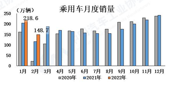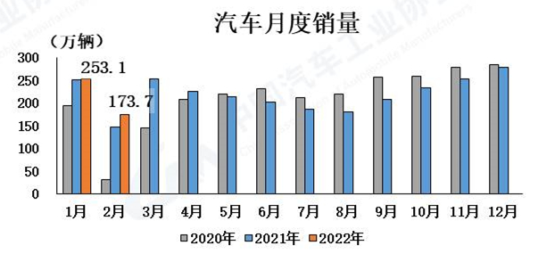 ![]() 近日(3月11日),中國(guó)汽車工業(yè)協(xié)會(huì)發(fā)布汽車工業(yè)經(jīng)濟(jì)運(yùn)行數(shù)據(jù)。2022年2月,我國(guó)汽車產(chǎn)銷分別完成181.3萬(wàn)輛和173.7萬(wàn)輛,環(huán)比分別下降25.2%和31.4%,同比分別增長(zhǎng)20.6%和18.7%。其中,新能源汽車產(chǎn)銷分別完成36.8萬(wàn)輛和33.4萬(wàn)輛,同比分別增長(zhǎng)2倍和1.8倍,表現(xiàn)總體依然出色,同比保持高速增長(zhǎng)。 中汽協(xié)分析指出,由于春節(jié)假期因素的影響,2月汽車產(chǎn)銷環(huán)比大幅下降,同比增長(zhǎng),原因是新能源及汽車出口起積極的促進(jìn)作用,庫(kù)存回補(bǔ)需求拉動(dòng)增長(zhǎng)。此外,2022年1-2月,汽車行業(yè)產(chǎn)銷情況總體保持穩(wěn)定,同比繼續(xù)保持增長(zhǎng),且比2019年同期呈現(xiàn)10%的增長(zhǎng)。 汽車產(chǎn)銷同比穩(wěn)中有增 2月,汽車產(chǎn)銷分別完成181.3萬(wàn)輛和173.7萬(wàn)輛,環(huán)比分別下降25.2%和31.4%,同比分別增長(zhǎng)20.6%和18.7%。1-2月,汽車產(chǎn)銷分別完成423.5萬(wàn)輛和426.8萬(wàn)輛,同比分別增長(zhǎng)8.8%和7.5%。