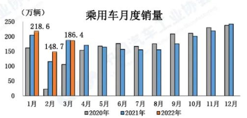 乘用車產銷同比略有下降 3月,乘用車產銷分別完成188.1萬輛和186.4萬輛,環比分別增長22.4%和25.1%,同比分別下降0.1%和0.6%,與上月相比,均由增轉降。1-3月,乘用車產銷分別完成549.9萬輛和554.5萬輛,同比分別增長11%和9%。