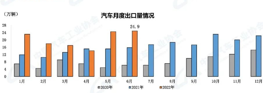 汽車出口形勢良好 6月,汽車企業(yè)出口24.9萬輛,連創(chuàng)歷史新高,環(huán)比增長1.8倍,同比增長57.4%。1-6月,汽車企業(yè)出口121.8萬輛,同比增長47.1%。近年來,隨著我國汽車產(chǎn)品綜合競爭力的不斷提升,中國品牌在國際市場上得到更多認可,新能源汽車更是成為當前的出口亮點。