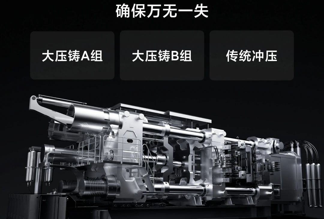 據介紹,為了確保萬無一失,小米汽車團隊一次性定制了三套壓鑄機,大壓鑄AB組,再加一套傳統沖壓方案,三套同時做,最終,小米超級大壓鑄順利完成。