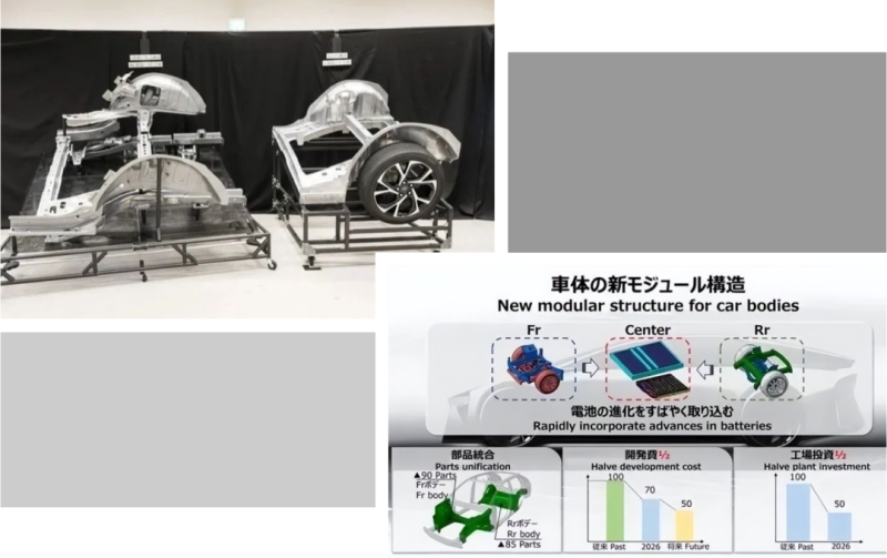 ● 豐田 豐田汽車在技術(shù)研討會(huì)上,計(jì)劃在即將推出的電動(dòng)汽車上采用千兆壓鑄工藝打造的車身,技術(shù)工藝與與特斯拉提出的“一體化壓鑄工藝”類似,豐田在制造中將汽車車身分為三個(gè)主要鑄件——前部、中部(搭載電池組)、后部,從而實(shí)現(xiàn)“重要部件集成”。