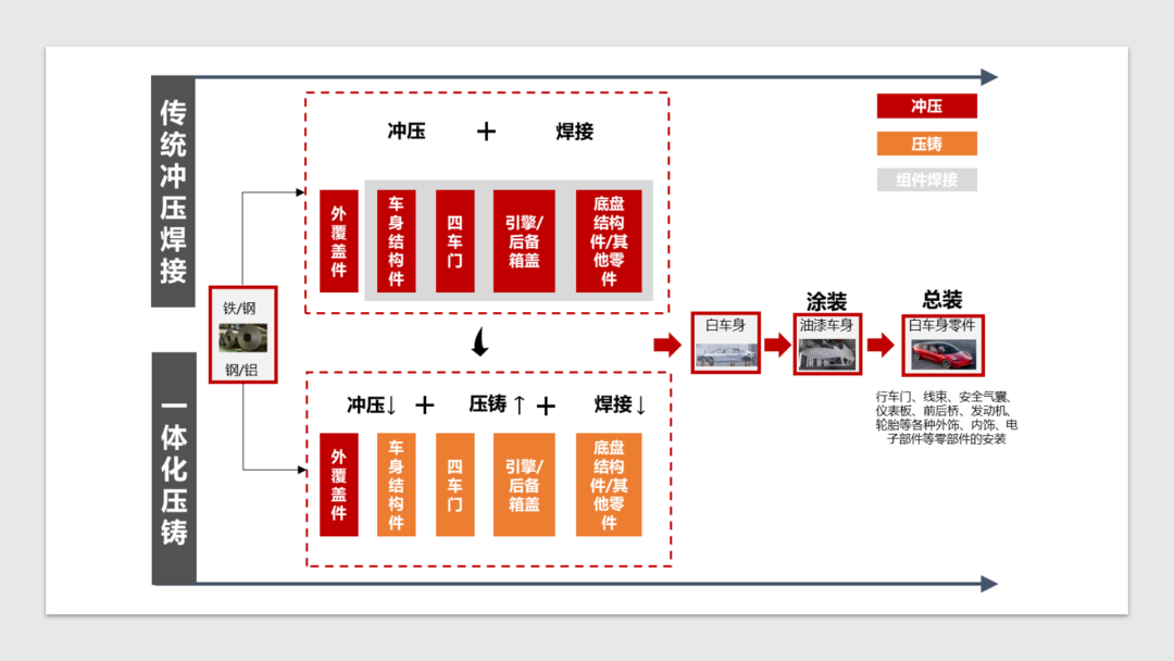 小結(jié) 日系的進(jìn)入代表一體化壓鑄正式進(jìn)入全球所有車企的視野,大家都在嘗試往這條路嘗試。 |