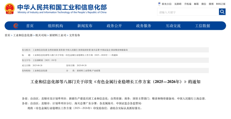 該方案明確提出2025 - 2026年有色金屬行業(yè)發(fā)展目標(biāo)及系列政策舉措。