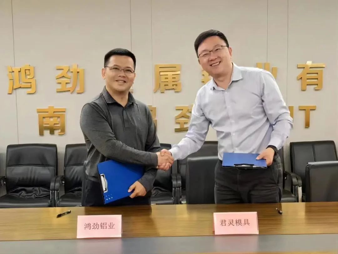 南通鴻勁金屬鋁業有限公司總經理張海泉、副總經理韓耀斌,寧波君靈模具技術有限公司總裁姚賢君及公司企管部主要負責人等出席了本次簽約儀式。簽約儀式上,張海泉和姚賢君代表雙方簽署了《CDM.Onestop全產業鏈開發平臺戰略合作協議》。 寧波君靈模具技術有限公司總裁姚賢君介紹,近些年來,寧波君靈模具通過產業升級和市場重塑,逐步建立了以模具為核心的開發制造應用平臺。此次簽約,通過雙方的優勢互補,共同建立了一種行業合作新模式,為當下市場環境所需的降本、增效提供新的選擇。