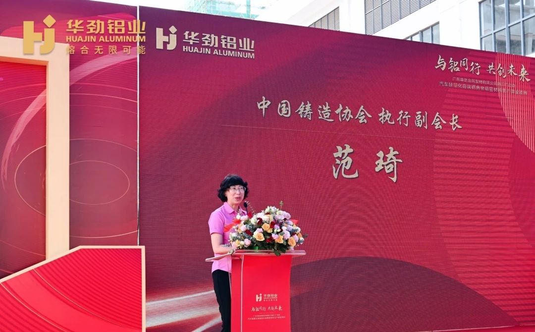中國鑄造協會執行副會長范琦女士致辭 范琦女士接著說:“我代表中國鑄造協會希望,祝愿華勁鋁業集團廣東華勁金屬型材有限公司把握《關于推動鑄造和鍛壓行業高質量發展的指導意見》利好政策,為鑄造企業提供更多、更精的鋁合金材料。同時,也祝愿中國鑄造業在廣東華勁金屬型材有限公司這樣優秀企業支持下越來越好,在并不遙遠的未來實現鑄造強國夢。” 據介紹,廣東華勁金屬工廠項目的建成,可以為附近的肇慶本田金屬、廣東鴻特、肇慶動力等大型壓鑄企業打造短途鋁液配送,鋁液配送范圍可以輻射到周邊100公里范圍內的壓鑄企業。廣東華勁金屬生產的低碳、環保、具有市場競爭力的鋁合金液,可以有效降低區域內壓鑄企業的生產成本,提高產品壓鑄質量,節能減排,降低環保壓力,提升市場競爭力,為當地經濟發展做出應有的貢獻。