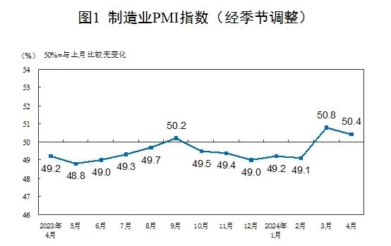 據(jù)介紹,此次廣州道晨競(jìng)得廣州番禺石基地塊,將為公司未來(lái)的發(fā)展提供有力支持,公司計(jì)劃在此地塊建設(shè)約6萬(wàn)平方集辦公、制造、研發(fā)為一體的現(xiàn)代化、智能化、數(shù)據(jù)化的花園式工廠,進(jìn)一步擴(kuò)大產(chǎn)能和開發(fā)新產(chǎn)品以支持其未來(lái)的市場(chǎng)競(jìng)爭(zhēng)力,也將為公司的業(yè)績(jī)?cè)鲩L(zhǎng)提供新的動(dòng)力。 4月我國(guó)制造業(yè)PMI為50.4% 國(guó)家統(tǒng)計(jì)局發(fā)布4月中國(guó)采購(gòu)經(jīng)理指數(shù)運(yùn)行情況。4月制造業(yè)采購(gòu)經(jīng)理指數(shù)(PMI)為50.4%,比上月下降0.4個(gè)百分點(diǎn),連續(xù)兩個(gè)月位于擴(kuò)張區(qū)間,制造業(yè)繼續(xù)保持恢復(fù)發(fā)展態(tài)勢(shì)。4月綜合PMI產(chǎn)出指數(shù)為54.4%,仍處于較高運(yùn)行水平,表明中國(guó)企業(yè)生產(chǎn)經(jīng)營(yíng)總體持續(xù)擴(kuò)張。