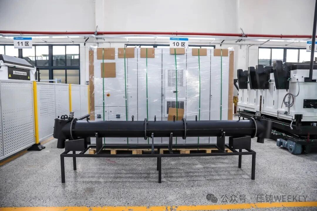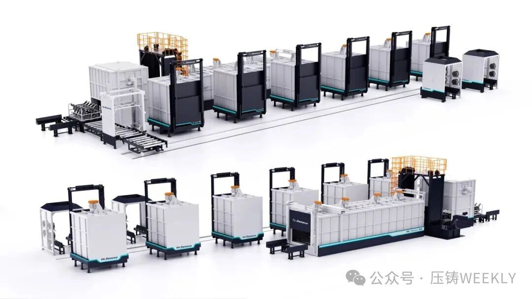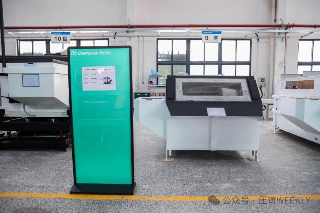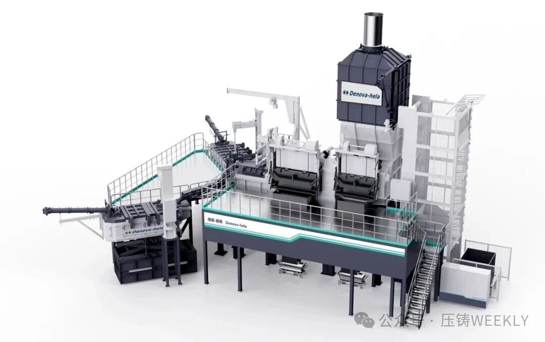 鋁合金集中熔化爐 在集中熔化爐方面,德諾創(chuàng)新性地推出一體化壓鑄“1+2”鋁水供應(yīng)系統(tǒng),即1 臺(tái)熔化爐可配套 2 臺(tái)超大型壓鑄島,熔化效率達(dá) 6.5 噸/小時(shí),保持室儲(chǔ)鋁水 12 噸。“這是全球最大級(jí)別之一,比國內(nèi)普遍的一體化壓鑄車間用的設(shè)備效率(4-4.5 噸/小時(shí))更高”。