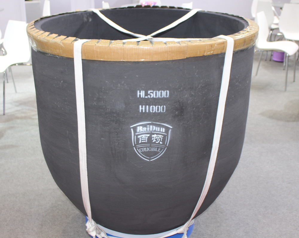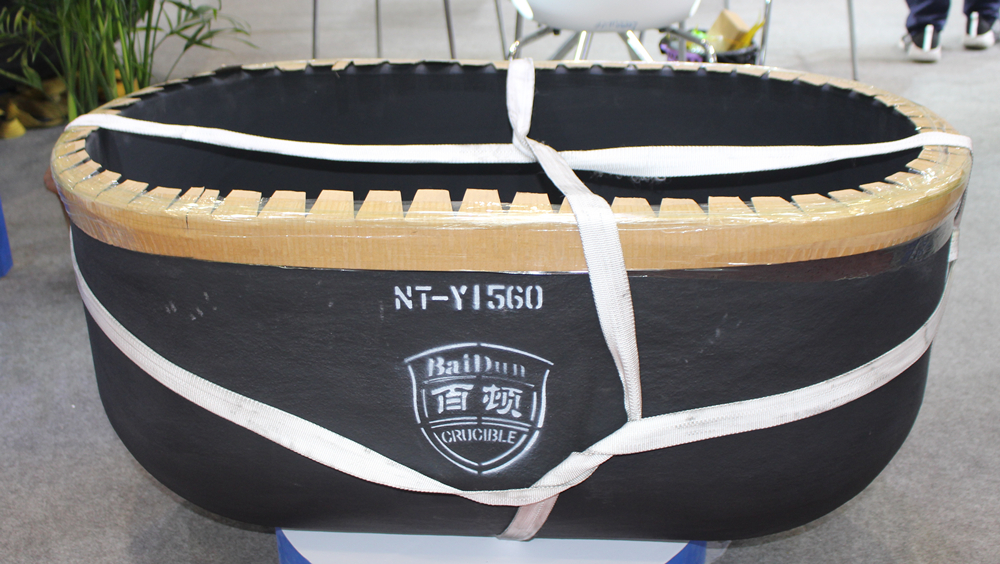 青島百頓3.5T鋁保溫坩堝 青島百頓銷售總經理孫建先生表示,3.5T石墨碳化硅坩堝,彰顯了青島百頓強大的研發和生產能力。近年來,越來越多的超大型壓鑄島生產線投用,行業對坩堝的需求也朝向大型化發展,青島百頓審時度勢,根據用戶需求,推出該行業最大的坩堝產品。 據了解,青島百頓此次展示豐富多樣的坩堝產品,除了3.5T鋁保溫坩堝外,還包括:Z2700帶嘴熔化坩堝、Y1560橢圓形坩堝、HL5000熔解保溫坩堝、Y1820橢圓形坩堝、B1550普通坩堝、B1300普通坩堝、NT1450感應爐坩堝等眾多坩堝產品,滿足不同客戶多樣化的需求。