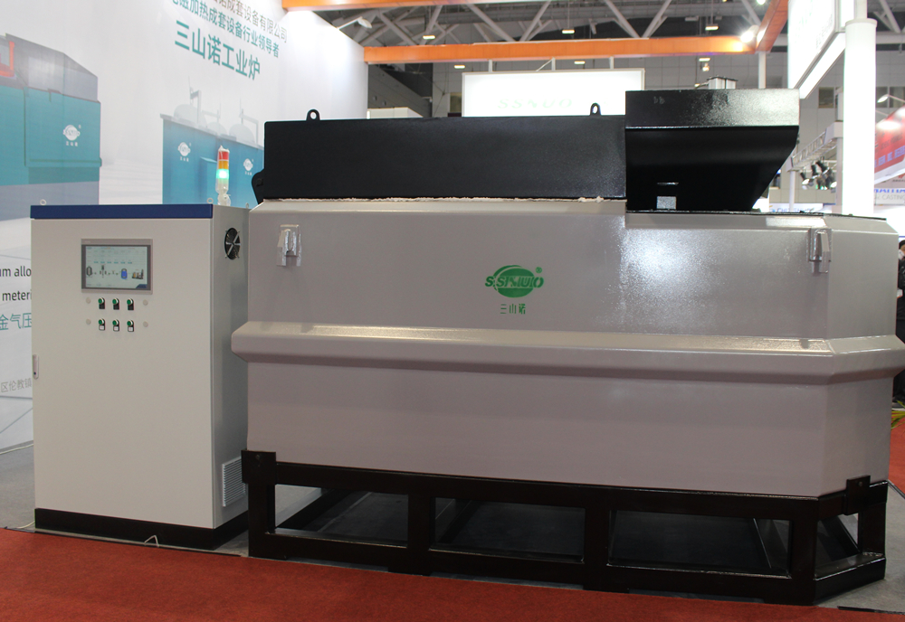 三山諾參展團(tuán)隊(duì),左四為公司總經(jīng)理黃炎培先生 在“2019國際(深圳)鑄業(yè)展”上,佛山市順德區(qū)三山諾成套設(shè)備有限公司攜最新研發(fā)的鋁合金氣壓定量爐“亮相”,展示其在壓鑄鋁合金熔煉及配套的成套設(shè)備的創(chuàng)新技術(shù)與成果。 據(jù)了解,鋁合金氣壓定量爐是在原浸入式保溫爐基礎(chǔ)上升級優(yōu)化的產(chǎn)品。其具有保溫定量功能,采用電磁感應(yīng)加熱,加熱快,料溫可控制在±1℃,;采用的氣壓系統(tǒng)定量,定量更精準(zhǔn),解決壓射過程中帶來的壓力不均,導(dǎo)致產(chǎn)品不穩(wěn)定現(xiàn)象發(fā)生;定量過程快,生產(chǎn)效率高,能有效降低能耗,相比傳統(tǒng)產(chǎn)品降低50%;采用上開蓋,密封性好,減少氧化渣產(chǎn)生,能給鑄造機(jī)提高非常潔凈的金屬液,從而提升鑄件品質(zhì)。