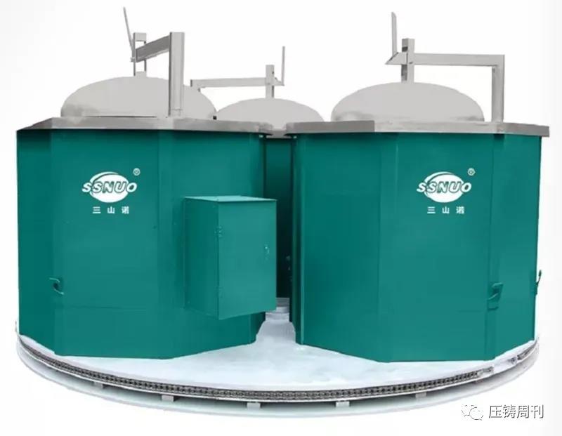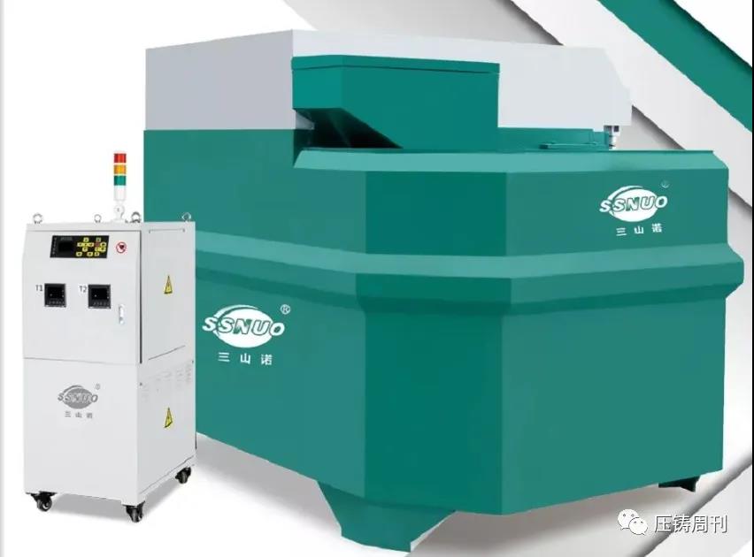 三山諾電磁感應鋁合金集中熔化爐組 另外,三山諾公司還開發了蓄熱式鋁合金燃氣集中熔化爐、蓄熱式鋁合金機邊熔化爐、鋅鋁合金自動配湯線、除氣機、鋁合金運包等燃氣方面的熔爐和配套設備。產品種類齊全,可滿足有色鑄造企業全面的熔鑄需求。