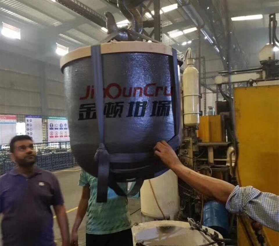 金頓碳化硅石墨坩堝在用戶工廠應用 金頓坩堝公司外貿部負責人、市場部副總監王子君女士表示:“與該國海軍司令部的聯絡始于2018年底,經過數月的溝通和交流,該客戶對我們的企業實力、研發能力、產品(樣品)質量進行了全面考核。2019年7月,雙方正式簽訂首批20只坩堝的供貨合同;8月通過國內港口發貨。目前,該批次坩堝正‘服役’與該司令部下屬有色鑄造廠,使用狀況良好。”