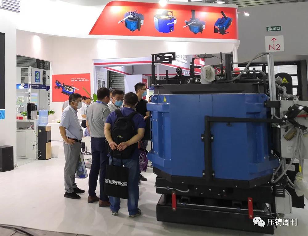 技術(shù)人員為專業(yè)買家介紹DTI系列鋁合金定量爐 三天的展會,STØTEK中國位于N1館N1D31的展臺,吸引了絡(luò)繹不絕的專業(yè)觀眾和買家。無論是實(shí)物展示的DTI系列浸入式加熱鋁合金定量爐,還是SMGT塔式熔化爐,均受到專業(yè)觀眾追捧。受疫情影響,壓鑄行業(yè)和企業(yè)受到不同程度沖擊,加速了行業(yè)轉(zhuǎn)型升級,高效率、高品質(zhì)的生產(chǎn)裝備受到追捧。STØTEK高性能熔煉設(shè)備自然受到壓鑄廠用戶的青睞。 |