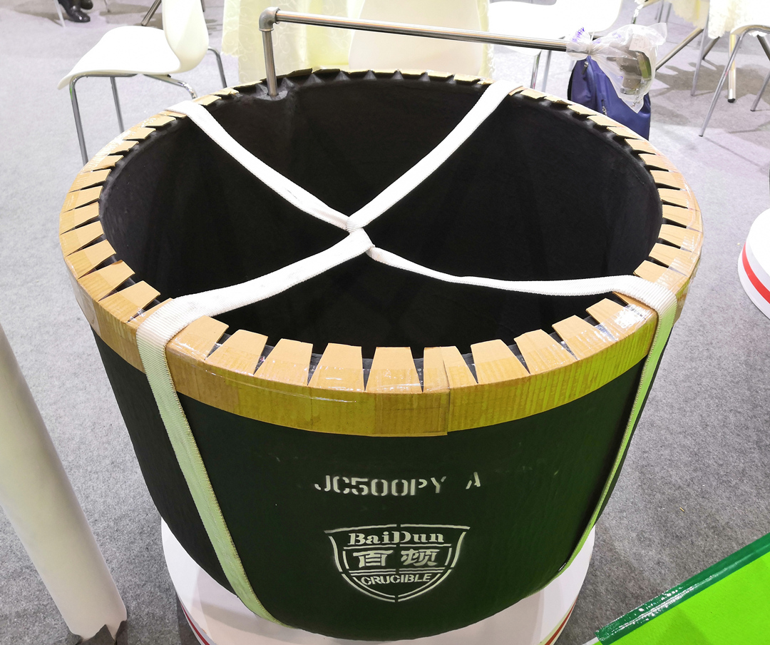 帶嘴坩堝Z-2300 據(jù)介紹,青島百頓坩堝引進(jìn)國外先進(jìn)的等靜壓成型技術(shù)和焙燒工藝,建有碳化硅坩堝和黏土石墨坩堝兩大系列自動化生產(chǎn)線。 產(chǎn)品具有抗氧化性強(qiáng)、導(dǎo)熱快、使用壽命長,節(jié)能環(huán)保等特點(diǎn)。其中,展會現(xiàn)場展示的帶測溫孔的保溫坩堝,具有抗氧化、壽命長,方便精準(zhǔn)測溫。一體化成型帶嘴坩堝,系公司最暢銷的一款碳化硅石墨坩堝,具有導(dǎo)熱快、熔化爐次高、可以有效避免粘接嘴不牢脫落等問題。帶擋渣板的橢圓形坩堝,堝口表面積大,特別滿足當(dāng)下用戶自動舀湯取料的需求。