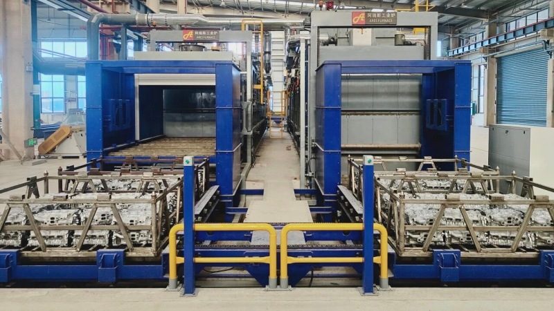 ![]() 當(dāng)前,汽車零部件產(chǎn)業(yè)正處于技術(shù)躍遷與價(jià)值鏈重塑的關(guān)鍵時(shí)期,輕量化材料的大規(guī)模應(yīng)用,對(duì)熱處理工藝提出了更高要求。阿瑞斯工業(yè)爐為國內(nèi)某領(lǐng)先汽車零部件供應(yīng)商提供的2套鋁合金T6熱處理爐,憑借深厚的技術(shù)沉淀和領(lǐng)先的創(chuàng)新設(shè)計(jì),贏得了客戶的信任,于近日通過驗(yàn)收,在廣西投入生產(chǎn)運(yùn)營。 設(shè)備名稱 鋁合金T6熱處理爐 技術(shù)參數(shù) 適用材料:鋁合金汽缸蓋/零部件 工藝用途:鋁合金T6熱處理 加熱介質(zhì)種類:天然氣 冷卻方式:水淬 固溶爐最高溫度:550℃ 時(shí)效爐最高溫度:220℃ 設(shè)備亮點(diǎn) 穩(wěn)定精準(zhǔn)的溫度控制系統(tǒng),保證工件優(yōu)異的溫度均勻性,提升產(chǎn)品合格率; 爐門對(duì)開專利設(shè)計(jì),顯著縮短爐門開閉時(shí)間,保證淬火轉(zhuǎn)移時(shí)間,減少爐門開閉熱損失; 支持自動(dòng)疊料和拆料,可配合AGV或機(jī)械手自動(dòng)上下料,大幅提升裝爐效率; 配備智能控制系統(tǒng),實(shí)現(xiàn)生產(chǎn)信息實(shí)時(shí)查詢與追溯,助力生產(chǎn)精細(xì)化管理; 耐高溫、高強(qiáng)度輕型料框設(shè)計(jì),減少能源消耗; 完善的清砂裝置,可在不停爐狀態(tài)下,對(duì)固溶爐及淬火槽進(jìn)行清砂,顯著縮短清砂時(shí)間,提高生產(chǎn)效率。