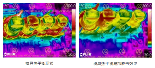 ![]() 模溫控制分區預熱示意圖 在壓鑄生產工藝中,不平均或不適當的模具溫度經常會導致鑄件尺寸不穩定。在生產過程中頂出鑄件變形,產生熱壓力、黏模、表面凹陷、內縮孔及熱泡等缺陷。模溫差異較大時,對生產周期中的變數,如填充時間、冷卻時間及噴涂時間等都會產生不同程度的影響。另外,模具的壽命亦會因受到過冷過熱的沖擊而導至昂貴鋼材產生熱裂等問題。