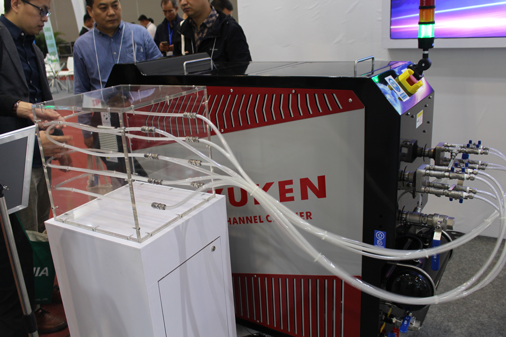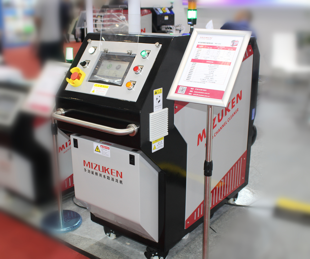 ![]() 廣東水研參展團隊 2019年11月26-29日,“第22屆國際模具及金屬加工、橡塑及包裝展(DMP)暨2019國際(深圳)鑄業展”在深圳國際會展中心(新館)隆重舉行。模具水路清洗解決方案提供商--廣東水研智能設備有限公司(下稱“廣東水研”)攜多功能模具水路清洗機、壓鑄模具多路流量監測機“亮相”。其中,多路流量檢測機系廣東水研首次推出的新產品。 多功能水路清洗機 據介紹,在壓鑄、注塑生產過程中,模具冷卻水路易沉積水垢、銹蝕、淤泥與水藻等,使冷卻水路截面變小,冷卻通道變窄,大大降低冷卻液與模具直接的熱交換率,嚴重影響冷卻效果,使模具產品成型品質不穩定,不良率增加,生產效率降低,增加企業生產成本。