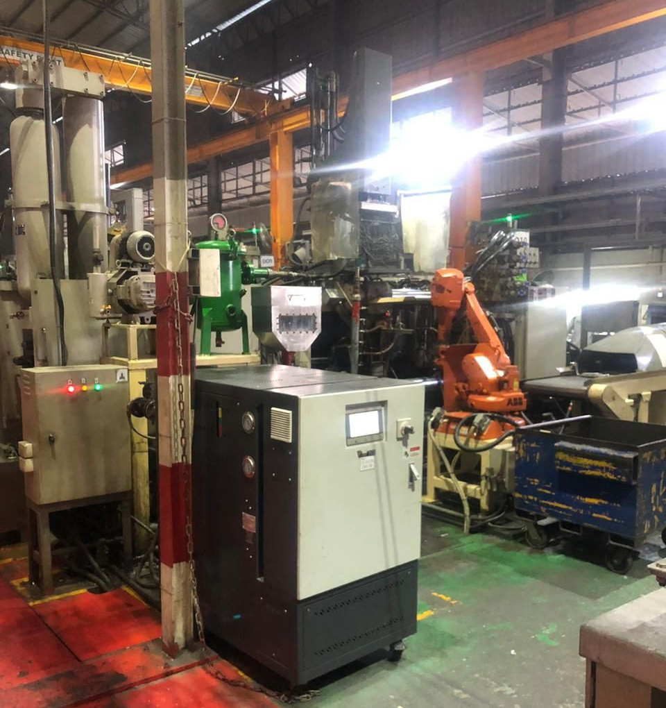 柬埔寨客戶工廠應(yīng)用 除了東南亞客戶外,今年以來,緯亞溫控也已向北美客戶出口了10臺雙溫控壓鑄模溫機(jī)。據(jù)了解,這是一家加拿大客戶,主要經(jīng)營壓鑄機(jī)及周邊設(shè)備,公司有近28年的發(fā)展歷史以及服務(wù)壓鑄行業(yè)的經(jīng)驗(yàn),主要為北美地區(qū)汽車零部件廠商,提供一站式壓鑄生產(chǎn)解決方案與技術(shù)服務(wù)。