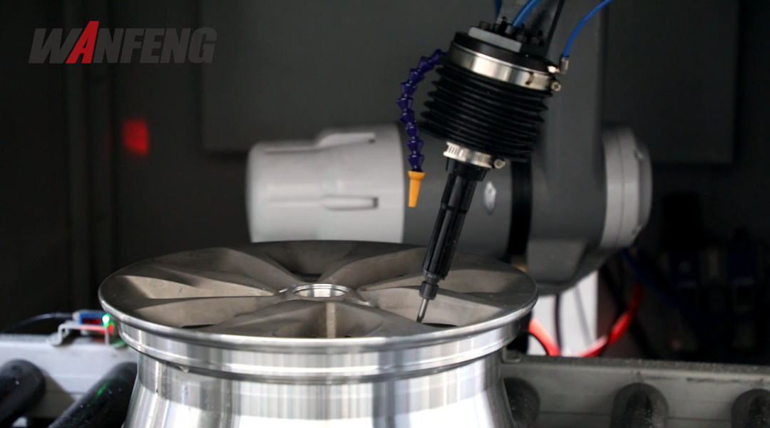 設(shè)備適用于副車架、電池包等大型薄壁件的鑄造成型,助力實(shí)現(xiàn)汽車零部件的輕量化。設(shè)備采用高速節(jié)能液壓控制系統(tǒng),擁有模具合攏檢測(cè)技術(shù)和抽負(fù)壓控制技術(shù),掌握成熟的冷卻、充型工藝,設(shè)備運(yùn)行精準(zhǔn)控制。并采用的公司自主研發(fā)的管理系統(tǒng),具有自動(dòng)識(shí)別、故障判定提醒等功能,實(shí)現(xiàn)簡(jiǎn)易操作,奠定智能鑄造基礎(chǔ)。 鋁輪轂機(jī)器人去毛刺生產(chǎn)線