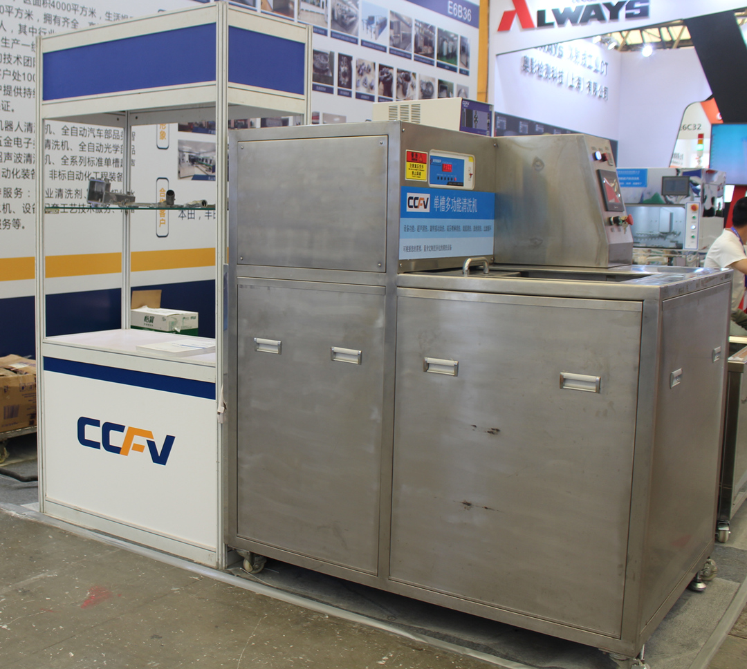 廣東賽宏展位吸引絡(luò)繹不絕的專業(yè)觀眾 據(jù)介紹,新研制的單體轉(zhuǎn)臺(tái)式清洗機(jī),為首次在專業(yè)壓鑄展會(huì)展出。該設(shè)備,采用轉(zhuǎn)臺(tái)式產(chǎn)品精定位裝夾設(shè)計(jì),可同時(shí)放置4到8個(gè)工件進(jìn)行清洗,結(jié)合高精度伺服設(shè)計(jì),將定點(diǎn)定位清洗、轉(zhuǎn)臺(tái)旋轉(zhuǎn)清洗、風(fēng)切及高速離心熱風(fēng)脫水等多功能結(jié)合一體。
