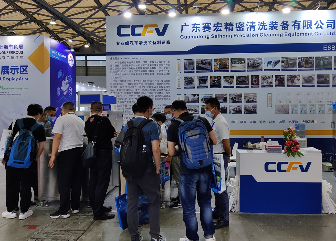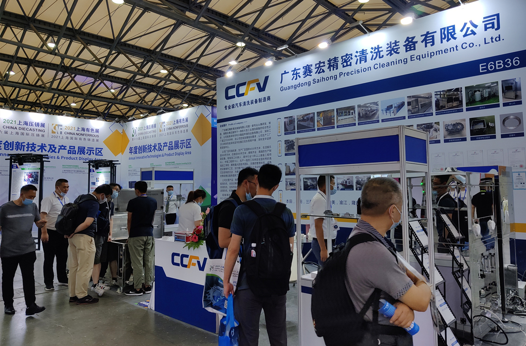 廣東賽宏參展團(tuán)隊(duì),左一為總經(jīng)理余松先生 2021年7月7日-9日,“2021上海國(guó)際壓鑄展暨上海國(guó)際有色鑄造展”在上海新國(guó)際博覽中心舉行。壓鑄產(chǎn)業(yè)鏈上下游400余家企業(yè)競(jìng)相參展,展示新產(chǎn)品、新技術(shù)及解決方案,為行業(yè)注入了新動(dòng)能。行業(yè)領(lǐng)先的工業(yè)零部件清洗裝備及工藝方案提供商--廣東賽宏精密清洗裝備有限公司(下稱“廣東賽宏”)攜新研發(fā)的單體轉(zhuǎn)臺(tái)式清洗機(jī),以及負(fù)壓真空烤箱、單體式多功能超聲波清洗機(jī)“亮相”展會(huì),獲得專業(yè)觀眾的追捧。 廣東賽宏始創(chuàng)于2009年,在工業(yè)精密零部件清洗裝備領(lǐng)域經(jīng)營(yíng)十余年,在技術(shù)、工藝及應(yīng)用方面有深厚的沉淀。自2009年成立至今,已為用戶提供超過1000臺(tái)的智能自動(dòng)化清洗裝備,為40余家壓鑄專業(yè)企業(yè)提供清洗裝備及服務(wù),并與十多家上市壓鑄企業(yè)保持長(zhǎng)期合作關(guān)系。經(jīng)過客戶長(zhǎng)時(shí)間的使用檢驗(yàn),產(chǎn)品獲得市場(chǎng)的高度認(rèn)可。