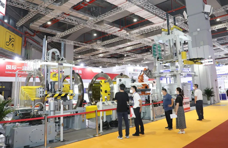 中鑄協張立波會長等領導嘉賓蒞臨萬豐科技展臺參觀交流 通過展覽演示和現場講解,展示了萬豐科技在熱加工智能制造領域的新技術、新成果,吸引了廣大行業領導、專家、客戶和專業觀眾到展臺參觀交流。