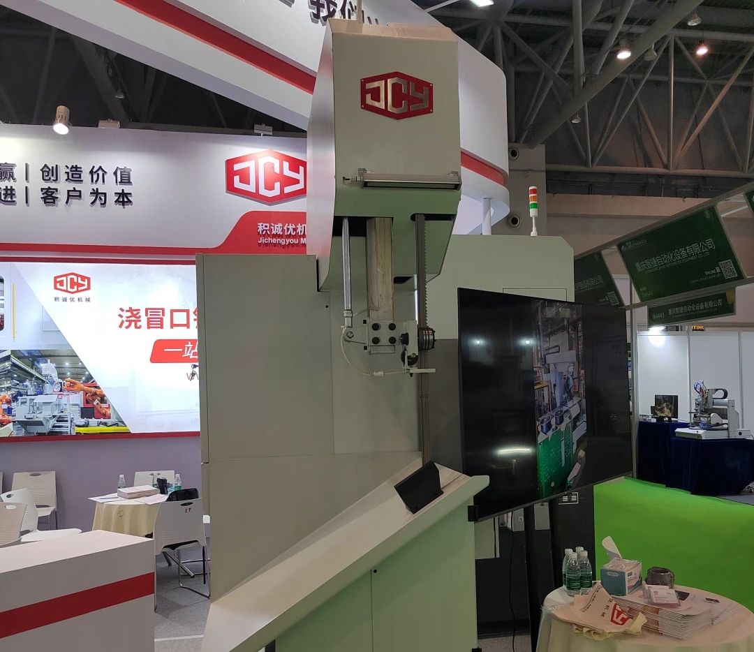 ![]() 積誠優展臺 2023年5月26-29日,“2023重慶立嘉國際鑄造及壓鑄展”在重慶國際博覽中心舉行。來自溫控設備廠、機加工刀具制造商、壓鑄件澆冒口鋸切設備提供商等壓鑄周邊設備企業,攜各自主打產品,為現場觀眾展示先進的技術和解決方案。 積誠優:推介高速高效率的壓鑄件澆冒口鋸切方案 在“2023重慶立嘉鑄造及壓鑄展”上,積誠優機械設備(蘇州)有限公司(簡稱“積誠優”)現場展示了兩款高性能高效率的壓鑄件產品鋸切設備,包括:一款是雙工位圓盤鋸、一款配合機械手用的高速帶鋸機。 為滿足大批量、小件的壓鑄件產品澆冒口鋸切需求,積誠優今年新開發了雙工位圓盤鋸設備。該設備設計了兩個工位(工作臺),一個工位鋸切澆冒口,一個工位上下料,鋸切與上下料兩道工序同時進行,大大節省時間,提高工作效率。這可以很好地滿足快節拍的壓鑄生產線的需求。