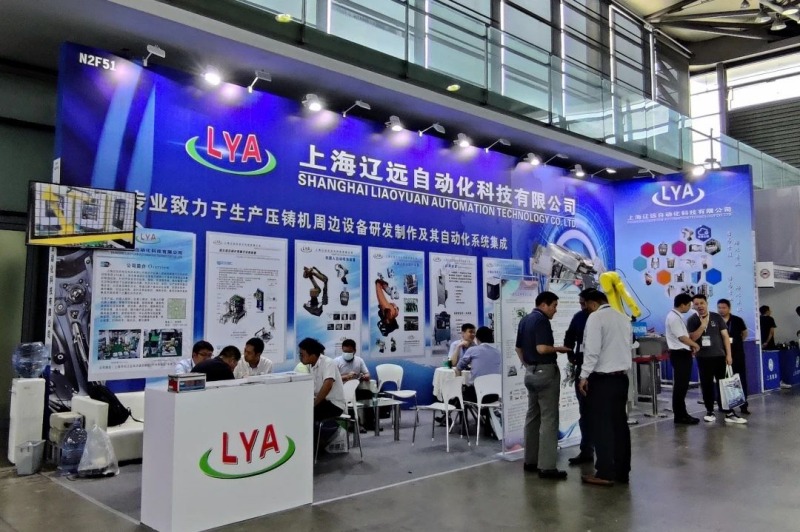 上海遼遠位于N2館的展臺 上海遼遠自動化科技有限公司(簡稱“上海遼遠”)主營壓鑄自動化及周邊設備、壓鑄島自動化集成解決方案。公司致力于為壓鑄廠用戶提供給料、取件、噴霧、去料柄、去渣包、切邊、去毛刺、清洗,以及模溫控制、脫模劑配比、真空壓鑄、鑄件傳送、廢氣處理等智能自動化壓鑄產線的全工藝流程的自動化及周邊設備,以及全套壓鑄島解決方案。