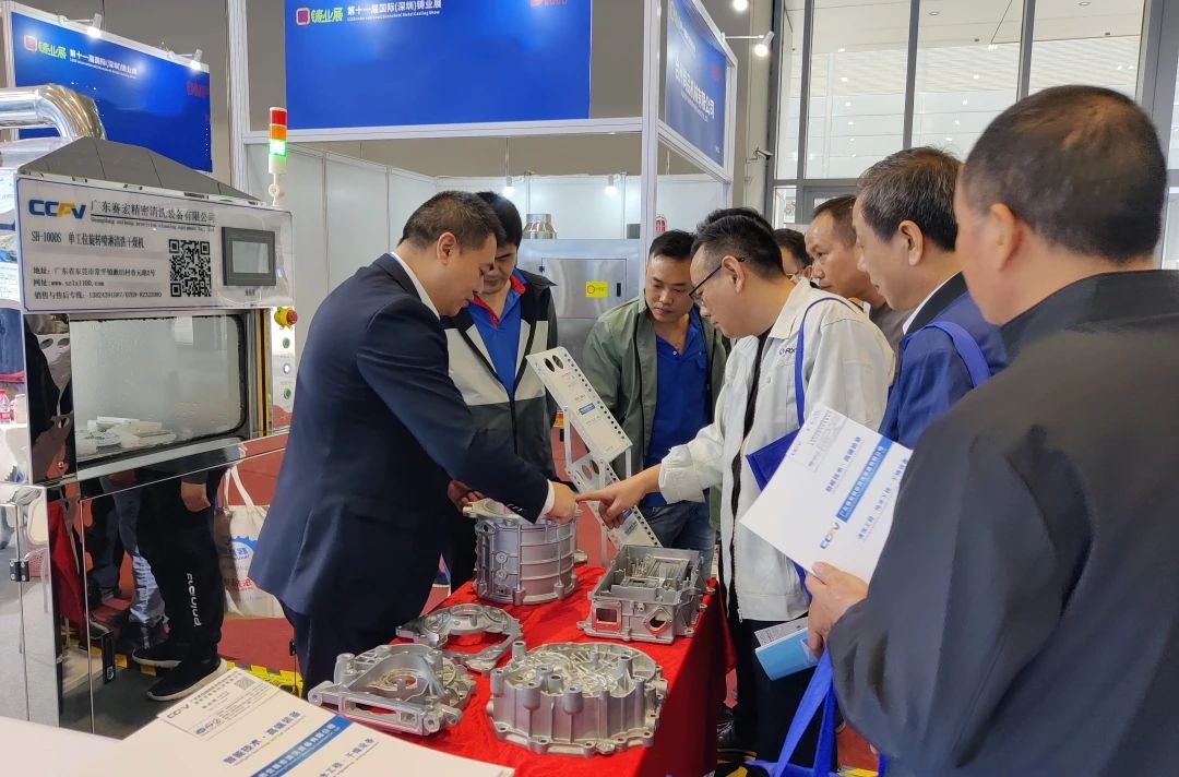 ![]() 廣東賽宏參展團隊,中為公司總經理余松先生 2023年11月27-30日,2023 DMP大灣區工博會暨國際(深圳)鑄業展,在深圳國際博覽中心隆重舉行。在壓鑄及鑄造館,160余家產業鏈上下游知名企業現場展示創新產品、技術、應用及解決方案。 廣東賽宏為新能源汽車“三電系統”壓鑄殼體提供高精度清洗解決方案 廣東賽宏精密清洗裝備有限公司(簡稱:廣東賽宏),系專業工業零部件清洗裝備制造商,致力于為傳統汽車壓鑄部品、新能源車壓鑄部品、3C通訊壓鑄部品領域,提供高清潔度、高精度自動化清洗解決方案。在新能源汽車領域,廣東賽宏一直緊跟行業發展步伐,開發出適應不同新能源汽車零部件的清洗設備,為行業發展助力。 在本屆展會上,廣東賽宏現場展示其技術成熟的標準單槽清洗機、高壓清洗機、單工位旋轉超聲波清洗機、單工位轉臺清洗機、真空烤箱等設備及整體解決方案,解決大多數壓鑄客戶在前期立項打樣階段,投入較高,后期產品上不了量等難題。此套解決方案投入較低,有效為壓鑄客戶節省了前期投入成本。其中,廣東賽宏的新能源汽車核心的“三電系統”殼體的高清潔度清洗技術及解決方案,受到現場觀眾的關注。