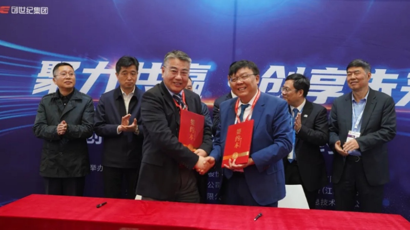 在4月9日舉行的戰略合作簽約儀式上,創世紀集團與廣州市霏鴻智能裝備有限公司、大前機床(江蘇)有限公司、安慶精研精密機械科技有限公司、喬那科數控裝備(江蘇)有限公司、深圳聚維新信息技術有限公司和赫勒精機(江蘇)有限公司六家代表企業分別簽署了戰略合作協議,與廣東中泰工業科技股份有限公司、大前機床(江蘇) 有限公司共同簽署了三方戰略合作協議。