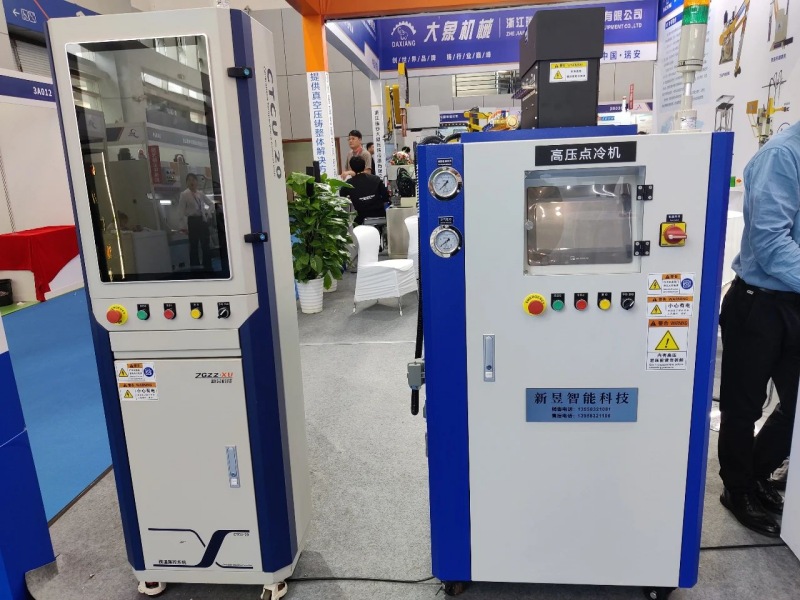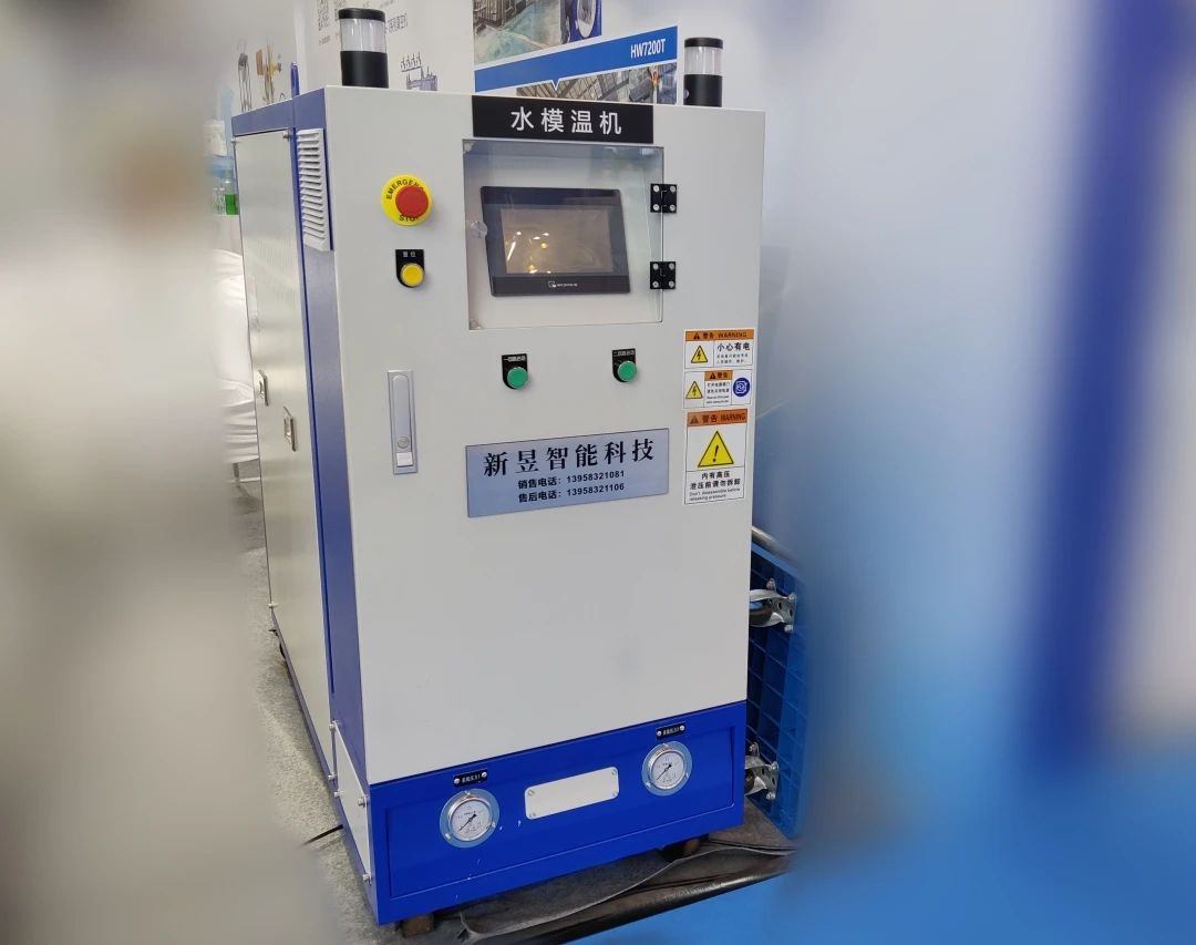 此外,新昱智能還展示了高壓點冷機和水模溫機等產品。高壓點冷機具備模具斷銷報警功能,能夠有效解決產品拉傷、粘模等問題。水模溫機則能夠快速冷卻/升溫,節能環保,降低后期維護成本。除了溫控設備外,新昱智能還專注于為壓鑄廠提供整套溫控島解決方案,滿足客戶的多樣化需求。