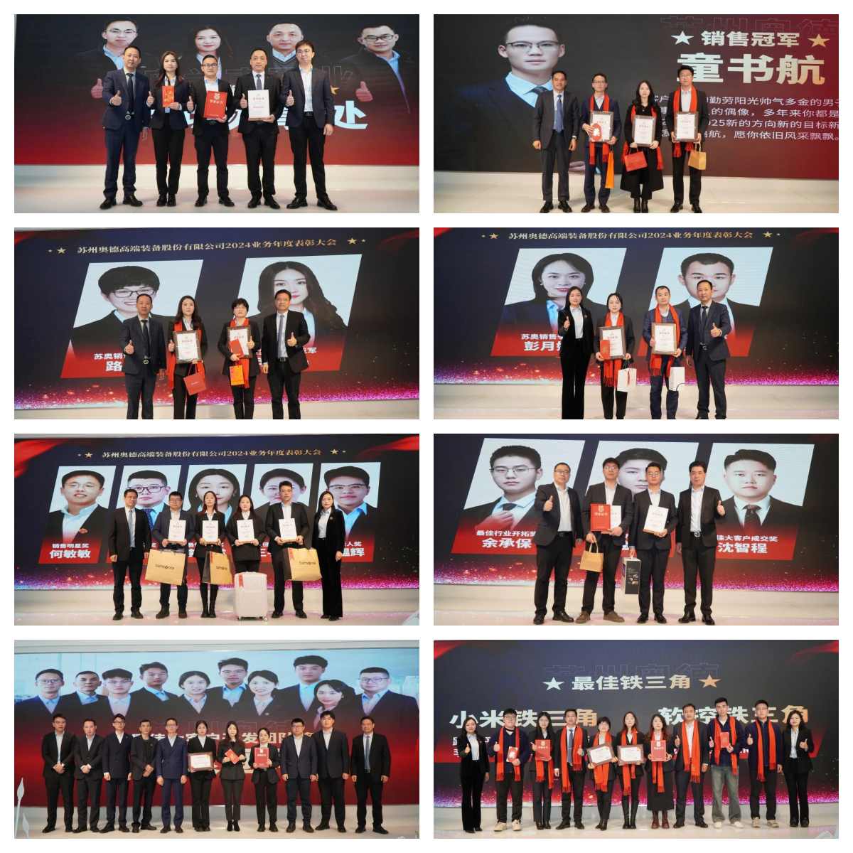 ![]() “破局立新,聚勢謀遠”!2025年1月18日,蘇州奧德高端裝備股份有限公司2024年業務年度表彰大會在昆山、深圳成功召開,共同回顧2024年業務工作,并對各業務團隊2025年的戰略規劃進行部署。 新品研發是企業保持競爭優勢和滿足客戶需求的重要途徑。創立至今,奧德始終以創新引領行業發展,本次會議特設有新品推薦會,持續豐富產品矩陣,推出多款新品及多個方案級的應用。 回望2024,奧德涌現出眾多勇于擔當、銳意進取的優秀員工、杰出團隊及銷售冠軍。為表彰他們的卓越貢獻,公司精心籌備了盛大的表彰儀式,向這些勤勉奮斗、業績斐然的銷售精英致以最誠摯的敬意與嘉獎。 蘇州奧德2024年度業務表彰大會 共話新征程 2024年總結&2025年規劃2025