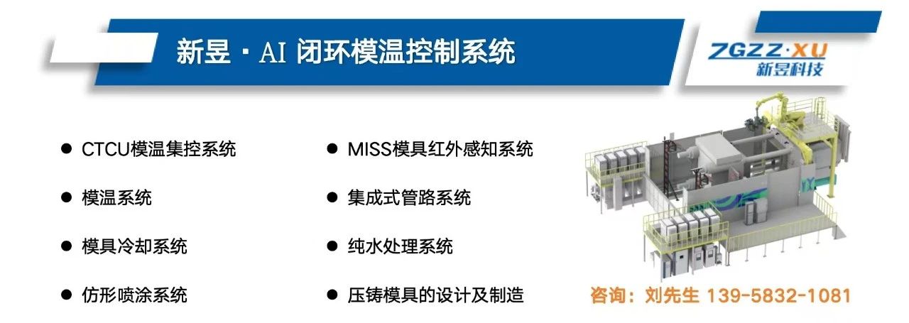 壓鑄模溫智能閉環(huán)溫控系統(tǒng) 經(jīng)實際生產(chǎn)環(huán)境驗證,ThermLoop展現(xiàn)出了“快”、“準(zhǔn)”、“穩(wěn)”的控溫能力。以下將簡要從這三個方面介紹ThermLoop的自主控溫能力: (1)異常模溫響應(yīng)快:在識別到模溫異常時,系統(tǒng)將提前快速響應(yīng)并計算溫控參數(shù),將模溫控制在標(biāo)準(zhǔn)溫度范圍內(nèi),避免響應(yīng)過慢導(dǎo)致模溫超出標(biāo)準(zhǔn)范圍后才進行調(diào)節(jié)。在面對模溫驟變的情況下,系統(tǒng)能夠在1模次內(nèi)快速響應(yīng),調(diào)節(jié)參數(shù),控制模溫。 (2)控制精度高:壓鑄工程師可自定義目標(biāo)模溫,系統(tǒng)進行自主調(diào)控。在溫控能力充足的情況下,系統(tǒng)能夠?qū)⒛>邷囟日{(diào)控至目標(biāo)溫度,達到模溫?zé)崞胶猓⒈3诌B續(xù)生產(chǎn)。實際模溫與目標(biāo)模溫的平均誤差小于±3%,實現(xiàn)“指哪打哪”的精準(zhǔn)控溫效果。 (3)穩(wěn)定性強:ThermLoop的魯棒性表現(xiàn)非常強,在面對停機、鋁液溫度變高以及其他特殊情況時,系統(tǒng)算法會自動識別現(xiàn)場異常情況,結(jié)合歷史控溫情況進行決策和計算,保障模具溫度保持穩(wěn)定,確保生產(chǎn)的連續(xù)穩(wěn)定。 此外,ThermLoop能夠結(jié)合歷史數(shù)據(jù)進行自主優(yōu)化,從而實現(xiàn)更加快速準(zhǔn)確的模溫控制效果。 關(guān)于新昱科技 新昱科技是一家專注于大型一體化壓鑄車身熱管理系統(tǒng)的企業(yè),其所有溫控設(shè)備均為自主研發(fā),且在國內(nèi)市場上,新昱科技的溫控設(shè)備種類最為全面。公司深耕壓鑄行業(yè),擁有一套完整的智能溫控系統(tǒng)。 其子公司東臨模具成立于2021年,是一家專業(yè)從事高精密壓鑄模具開發(fā)、設(shè)計與制造的公司。作為新昱科技的子公司,東臨模具與新昱科技攜手并進,旨在將溫控技術(shù)和模具技術(shù)高度融合,致力于系統(tǒng)化解決壓鑄汽車件良品率低、生產(chǎn)效率低、節(jié)拍慢、成本高等難題。 目前,兩家公司已搬遷至位于浙江省寧波市杭州灣新區(qū)眾源路的新建廠房,廠房面積達25000㎡。