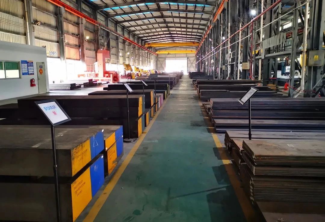 廣東天佳譽特殊鋼倉儲中心 今年8月,天工國際大手筆投資和進軍“一體化壓鑄模具鋼材料”領域,在既有4500T大型壓機基礎上,引進行業領先的7000T超大型壓機。可鍛造厚度1米以內寬度1.5-1.6米的大模塊和直徑1.2米的大圓鋼,已經具備可滿足汽車輕量化核心結構件一體化壓鑄件集成對模具材料質量及規格定制化的要求。 黃健先生介紹補充說,天工國際配置了完善且先進的生產裝備,除了4500T、7000T壓機外,還有EF電弧爐、AOD精煉爐、LF爐外精煉系統、VD真空精煉爐、氣體保護澆鑄系統、850/910軋機機組另外天工還裝備了美國康薩克保護氣氛電渣爐8臺(7噸-30噸)以及奧地利精鍛機組多臺(750噸-1300噸),保證模具鋼的制造能力和產品品質。與此同時,還配備齊全各類國際領先的檢測設備。