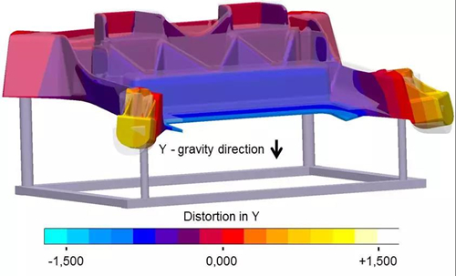 圖21:熱處理結束時,由于固溶處理過程中重力的影響,機架中的連接節點在y方向上的變形 |
