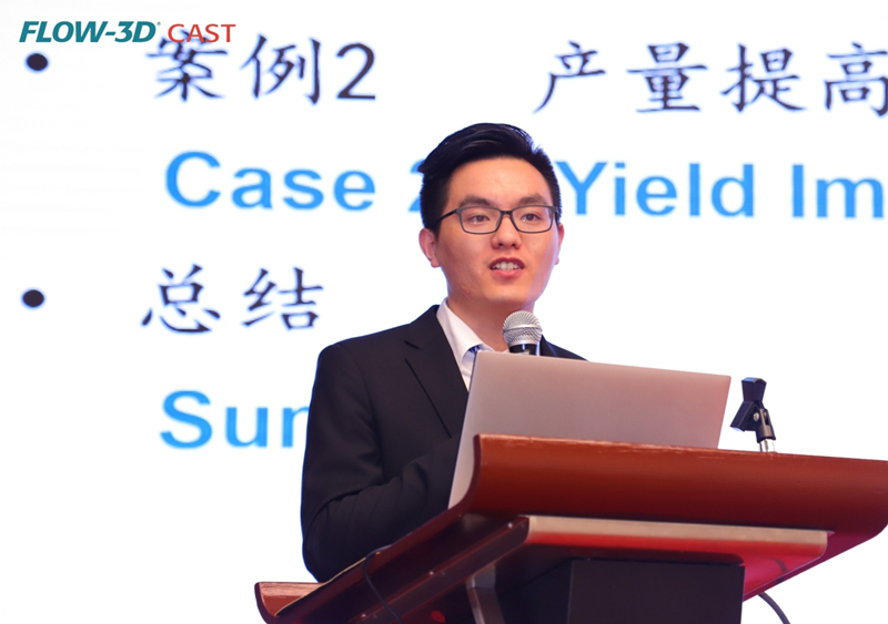 華域皮爾博格有色零部件有限公司的劉緒周先生 帕盛博(蘇州)軟件科技有限公司的渠立歡先生以《FLOW-3D軟件在壓鑄方面的應用》,分享了“氣孔粒子追蹤”、“產量提高”兩個FLOW-3D軟件的應用案例。