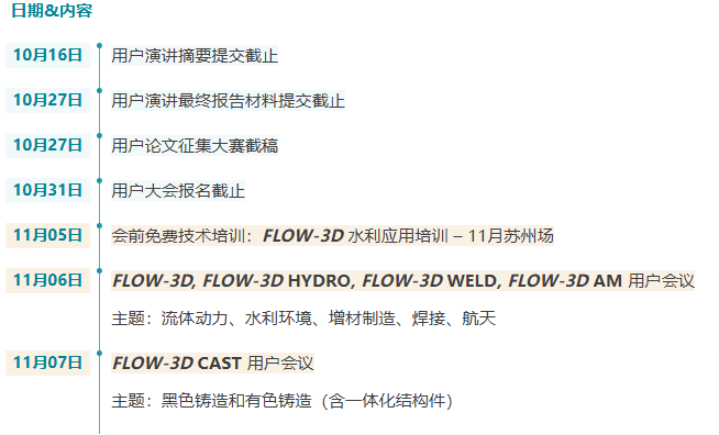 邀請函 INVITATION 2025 FLOW-3D 中國用戶大會將于11月6 - 7日在蘇州中茵皇冠假日酒店舉行。用戶大會是 FLOW-3D 用戶年度相聚和分享交流信息的重要平臺。會議由 FLOW-3D 美國總部和中國團隊為用戶帶來最新的產(chǎn)品發(fā)展方向,產(chǎn)品應(yīng)用以及新功能等內(nèi)容,以及 FLOW-3D 軟件用戶群在各領(lǐng)域的應(yīng)用成果和軟件使用經(jīng)驗分享等。