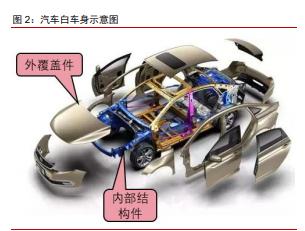 汽車制造工藝主要分為沖壓、焊裝、涂裝、總裝四大工藝環(huán)節(jié)。傳統(tǒng)汽車車身為鈑金焊接結(jié)構(gòu):1.沖壓:將整卷鋼板或鋁板用多臺大型壓力機連續(xù)沖壓成小塊鈑金零件。2.焊裝:將沖壓完成的小塊鈑金件拼焊為車身結(jié)構(gòu)件,包括四門及前后蓋(引擎蓋+后備箱蓋),焊接完成的車身結(jié)構(gòu)件即為白車身。3.噴涂:將焊接完成的白車身噴涂油漆,實現(xiàn)防銹和美觀作用。4.總裝:將懸架及動力系統(tǒng)、電控系統(tǒng)、內(nèi)飾件裝配至車體上,最終完成整車制造。