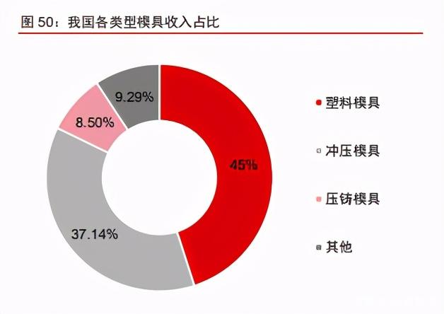 特斯拉一體壓鑄技術(shù)使力勁拉大了其在 5000 噸以上機型上與競爭對手的相對優(yōu)勢, 壓鑄機大型化已成為行業(yè)趨勢。冷室壓鑄機存量市場從細分噸位段看,力勁科技在 5000 噸以下機型各鎖模力噸位段基本占據(jù) 50%左右份額,伊之密各噸位段機型市占率在8%~16% 之間波動。瑞士品牌布勒市場份額均在 1000 噸以上機型,并且隨著噸位增加市占率提升。 5000 噸以上機型因剛推出市場不久,市場存量機型極少,當前市占率數(shù)據(jù)難以反映真實 情況。隨著特斯拉一體壓鑄技術(shù)導入以及均采購力勁和其子品牌 IDRA 超大噸位壓鑄機, 力勁目前在 5000噸以上機型與競爭對手優(yōu)勢明顯拉大。2020年底布勒發(fā)布 5600 噸機型, 并且公布研發(fā) 8000 噸機型計劃,海天金屬亦推出 5000 噸級別機型。這說明在特斯拉一體 壓鑄工藝驅(qū)動下,壓鑄機大型化趨勢已確立。 過去三年我國壓鑄模具市場規(guī)模約 240 億~260 億,競爭格局較為分散 2019 年我國模具行業(yè)規(guī)模約 2727 億,行業(yè)增速受制造業(yè)景氣影響較大。模具是制造 業(yè)核心裝備之一,我國模具行業(yè)收入從 2007 年的 666 億增長 至 2017 年的 2966 億。隨著我國出口導向型經(jīng)濟逐漸轉(zhuǎn)型,過去十年間模具行業(yè)增速逐漸 降低。2018 年以來模具行業(yè)絕對收入出現(xiàn)下降,貿(mào)易摩擦導致制造業(yè)固定資產(chǎn)投資趨緩 是主要因素。 壓鑄模具在模具行業(yè)占比接近 10%,過去 2~3 市場總規(guī)模在 240 億~260 億左右。從 產(chǎn)量角度看,過去 10 年間我國模具產(chǎn)量總體呈增加趨勢,與行業(yè)收入規(guī)模趨緩相對應, 說明過去五年間模具行業(yè)整體競爭日趨激烈。模具主要分塑料模具、沖壓模具和壓鑄模具。 根據(jù)模具行業(yè)協(xié)會最新的 2012 年鑒數(shù)據(jù)看,從收入占比看塑料模具占比最高在 45%,沖 壓模具占比 37%,壓鑄模具占比僅 8.5%。通過壓鑄模具行業(yè)專家調(diào)研,過去 3 年壓鑄模 具占模具行業(yè)產(chǎn)值接近 10%左右,可以大致推算我國壓鑄模具行業(yè)過去 2~3 年市場總規(guī)模 在 240 億~260 億左右。
