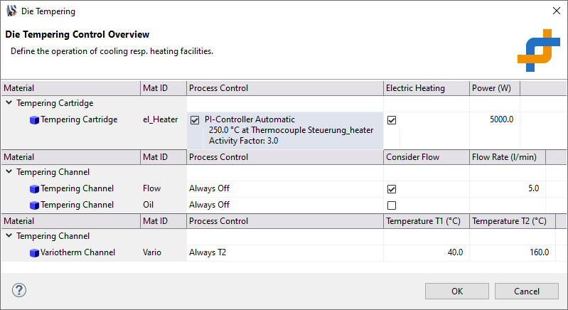 圖3:升級版的X射線的顯示可以幫助用戶更好的評估模擬結果,更精準地預測。 結果界面的整體可視化性能得到了改善,結果評估可提速10倍,更加順暢。此外,在三維結果上進行取值或拖動,可以顯示出具體選定的結果值("拾取的值")。 不同結果的 "多視圖 "同步顯示的性能得到了改進,使評估更有針對性,用戶可以更直觀、更可靠地同步設置和視圖、同步不同結果的取值。不同項目版本也可使用多視圖功能。 簡化了圖片以及動畫的創建過程。MAGMASOFT®6.0以優化的工作流程為用戶提供支持:快速直觀的生成圖片和動畫,即可進行結果分析。 鑄造工藝模塊的新功能 MAGMASOFT®6.0已針對重力金屬型鑄造工藝進行了廣泛的更新和擴展,該模塊具有TAG網格(自適應幾何網格)。TAG網格已經應用于高壓鑄造工藝。此次網格的升級將為金屬型鑄造提供了更靈活、更真實幾何網格劃分。相應的求解器考慮了模具熱平衡的精確表示、金屬自由表面的描述、熔體粘度以及預測卷氣的特殊要求,從而提高了結果質量。 新的求解器可以同時計算不同的流動模型(例如,填充過程中通過冷卻通道的流動)。這不僅可以讓用戶更準確地預測型腔排氣和跟蹤型腔充型和凝固過程中的困氣,還可以更精確地計算重力金屬模具中的熱平衡。除了常規的冷卻和加熱管道外,現在首次可供用戶使用PI控制的電加熱和變溫控制,通過改變介質溫度進行冷卻和加熱(圖4)。這也允許在準備生產時計算模具的預熱。