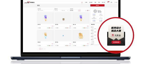 進入智鑄超云官網點擊屏幕右側“模具設計大賽”懸浮圖標 方式三