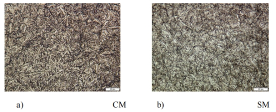圖 19:材料大塊位置,a) CM 和 b) SM 的顯微組織。