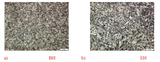 圖 21:中空部分位置, a) BH 和 b) EH 的顯微組織。
